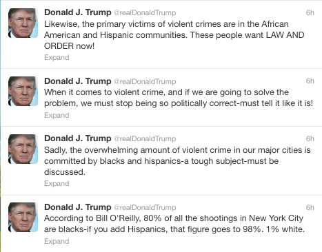 Today, the Donald took to Twitter to express his views on crime in major cities and how it is directly related to African Americans and Latino-Americans. His goal seems to be that he wanted to to put political correctness aside and tell the truth…. whatever truth that is.