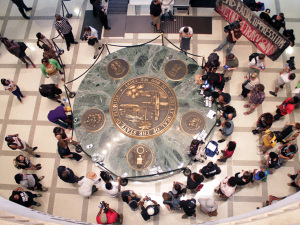 For more than eight days, a group of activists and students organized by the Dream Defenders have occupied the Florida Capitol, right outside Florida Governor Rick Scott’s (R) office. The activists say they plan to occupy the Capitol until the governor calls a special session to review the state’s Stand Your Ground law, racial profiling, and the school-to-prison pipeline, and consider what they call the Trayvon Martin Act. But after meeting with the protesters last week, Scott announced he has no intention to review Stand Your Ground, which played a role in jury deliberations that led to George Zimmerman’s acquittal.