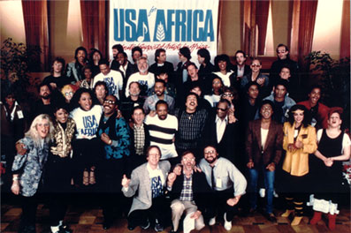 This was both impossible and appropriate. The vocalists—an ad-hoc supergroup that would come to be known, pragmatically, as “USA for Africa”—were there to record, over the course of a long night, a song that was written for them by Michael Jackson and Lionel Richie, inspired by Harry Belafonte, and produced, in part, by Jones. It was to be a charity drive in musical form. Proceeds from the song’s sales, the idea went, would go toward alleviating a famine in Ethiopia. It was a song that was also an idea: “We Are the World.”