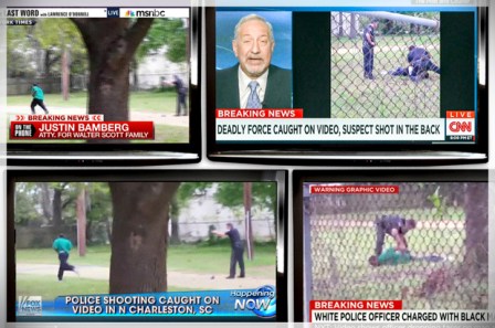 But video shot by an anonymous bystander shows a very different, chilling version of events: As the video begins, the two men’s hands are interlocked. It’s unclear what is happening. But a second or so later, Scott breaks free and runs at a fairly slow pace away from the officer. Slager calmly pulls out his gun, aims and fires eight times at Scott’s retreating back. He then walks over to Scott’s now prone and bullet-ridden body, and handcuffs him, without offering him any medical assistance. Another officer, a Black man, arrives on the scene and also fails to administer any aid to the victim. Meanwhile, Slager, retraces his steps a few feet, picks up a dark object, widely believed to be the taser, casually saunters back over and tosses the object near the victim’s body. The nonchalance, the lack of urgency, is almost as unsettling as the murder itself. The casual way that Slager aims, fires and snuffs out Walter Scott’s life is devastating.