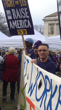 My name is Angel Rivera. Like the Fight for 15 workers who are protesting across the country today, I know what it’s like to work hard, but be unable to get by because of poverty wages and an employer that doesn’t respect your rights. But, thanks be to God, I also know that hard work can be rewarded when you win a union and better wages.
